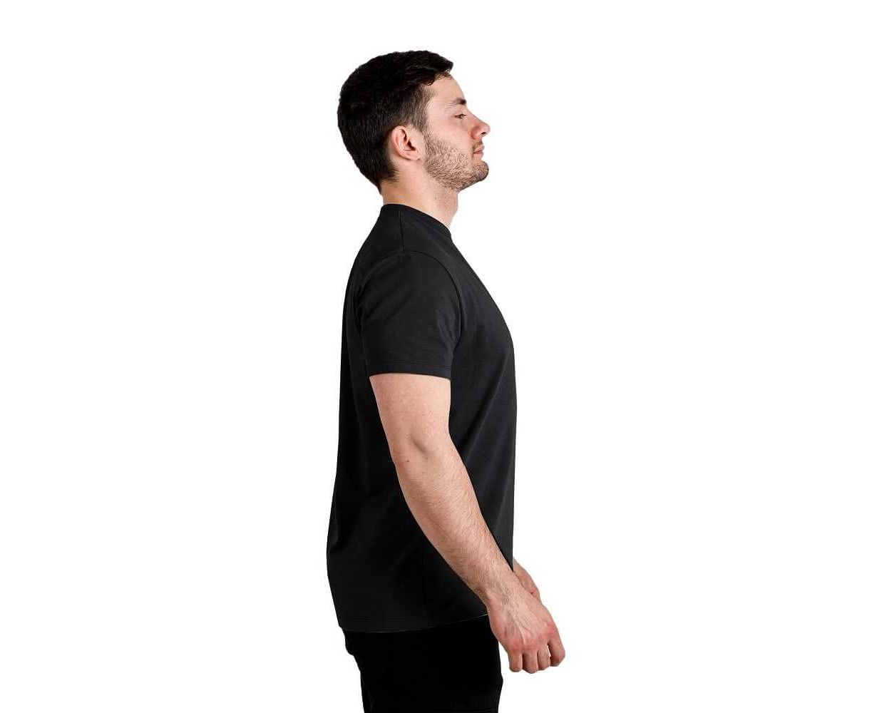Чорна чоловіча футболка Jersey Black виконана з матеріалу (комбінації 95% натуральної бавовни і 5% еластану, щільністю 200-210 г/м2), дає зручну посадку по будь-якій фігурі. Річ комфортно облягає тіло, але не здавлює і не розійдеться по швам при активних рухах. Бавовна тримає комфортну температуру, вбираючи та відводячи від тіла вологу. Нитки еластану та якісне пошиття не дають футболці втратити форму при регулярному використанні та після багаторазового прання. Одягайте футболку щодня, або під час виїздів на природу, занять спортом і будьте впевнені, що річ на багато сезонів збереже оригінальний вигляд.