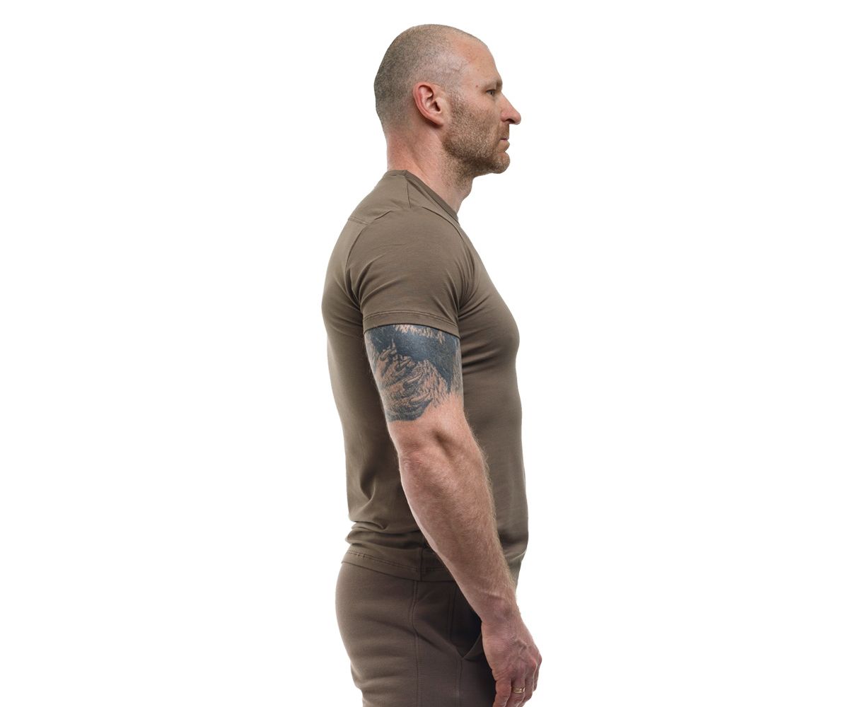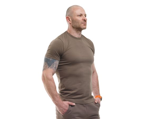 Футболка чоловіча Jersey Tundra виконана з матеріалу (комбінації 95% натуральної бавовни і 5% еластану щільністю 200-210 г/м2), дає зручну посадку за будь-якої фігури. Річ комфортно облягає тіло, але не здавлює. При нахилах, махах руками та іншій активності вам не буде здаватися, що футболка ось-ось розійдеться по швам.