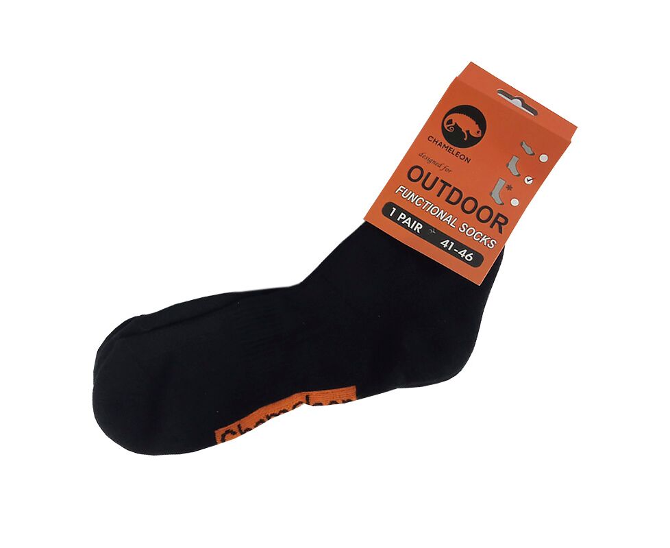 Багатофункціональні чоловічі шкарпетки Chameleon outdoor long міцні та зносостійкі, виготовлені з 80% бавовни, 17% поліаміду, 3% еластану. Матеріал добре вбирає вологу та перешкоджає виникненню неприємного запаху, знижує стомлюваність м'язів, дозволяючи витримувати підвищені навантаження. Шкарпетки підійдуть відмінно для туризму, активного відпочинку та повсякденного носіння в літній та демісезонний період. Вентиляційні зони дозволяють вільно циркулювати потоку повітря до ніг, зберігаючи ноги сухими.
