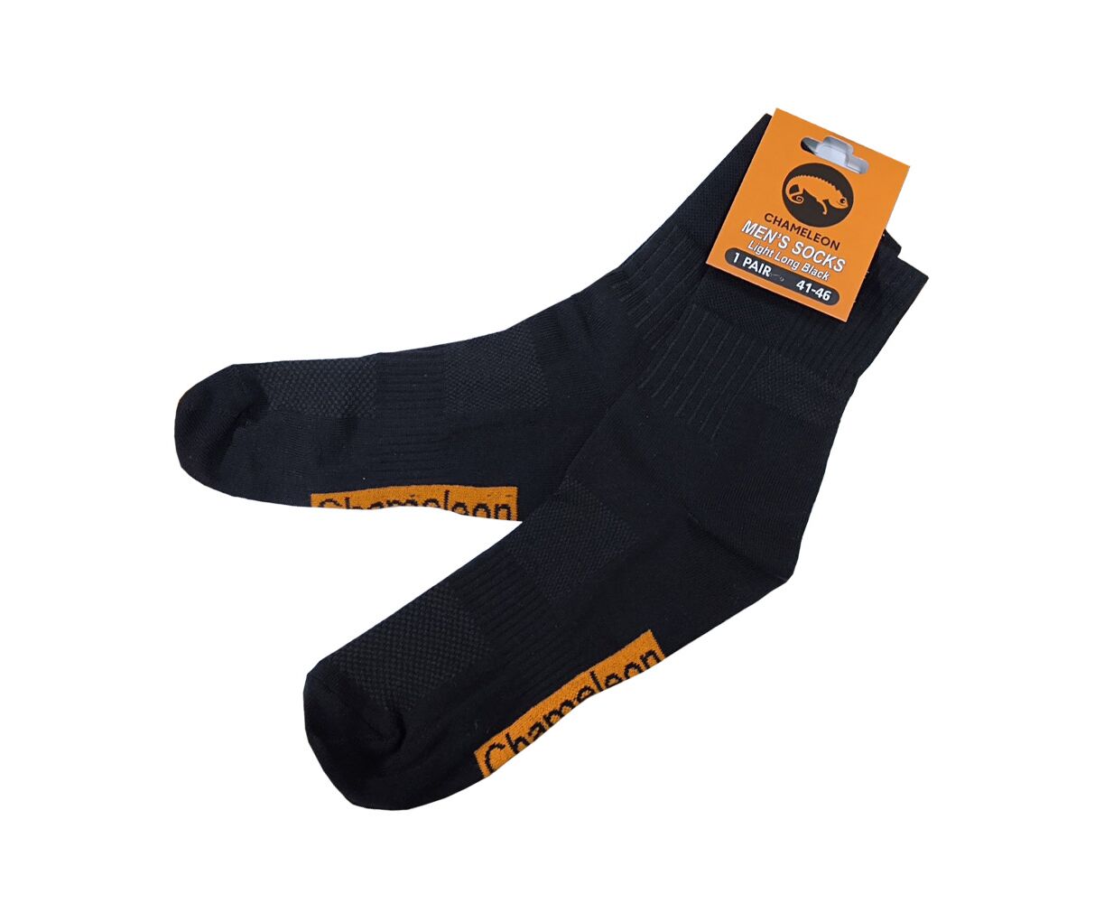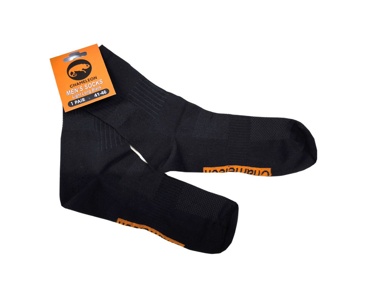 Чоловічі шкарпетки Chameleon outdoor light long Black міцні та зносостійкі, виготовлені з 80% бавовни, 15% поліаміду, 5% еластану для сучасної екіпіровки. Матеріал еластичний з посиленою, міцною, антибактеріальною ниткою. Матеріал добре вбирає вологу і перешкоджає виникненню неприємного запаху, знижує стомлюваність м'язів, дозволяючи витримувати підвищені навантаження. Шкарпетки підійдуть відмінно для туризму, активного відпочинку, але і як формений одяг для охоронних і військових структур, також для полювання, риболовлі, походів і для повсякденного використання в теплу пору року. Термозони на шкарпетках забезпечують вентиляцію і відведення вологи, дозволяють вільно циркулювати потоку повітря до ніг, зберігаючи ноги сухими під час активного руху.