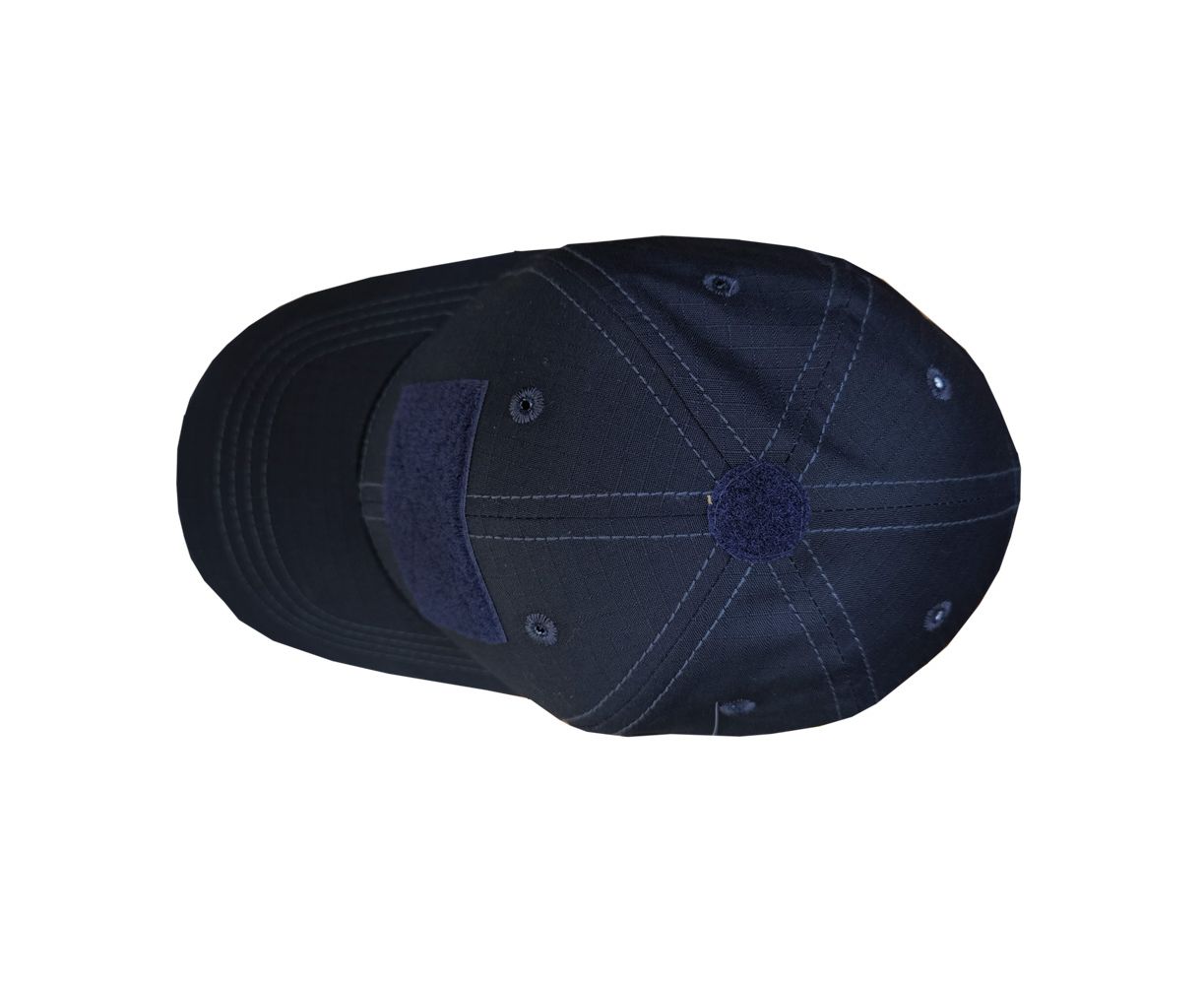 Бейсболка тактическая с эластаном Dark Navy из ткани рип-стоп стрейч (65 % полиэстер / 32 % хлопок/ 3% эластан). Плотность ткани 230 г/м2. Бейсболка подгоняется под необходимый объем головы с помощью липучки. Изделие прочное, практичное и немаркое. Рип-стоп устойчив к истиранию и разрывам. Есть велкро-панель для опознавательных знаков, вентиляционные отверстия.
