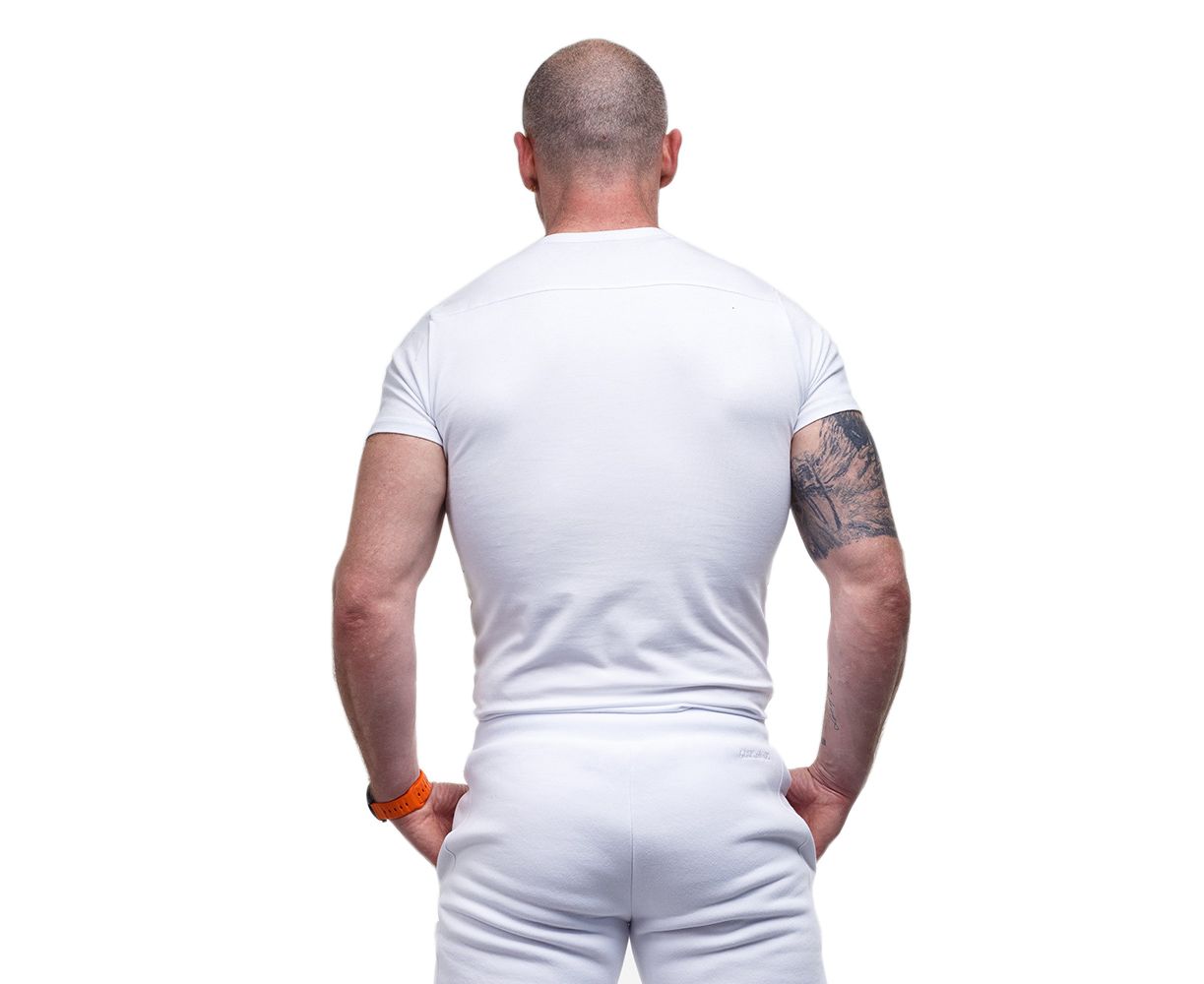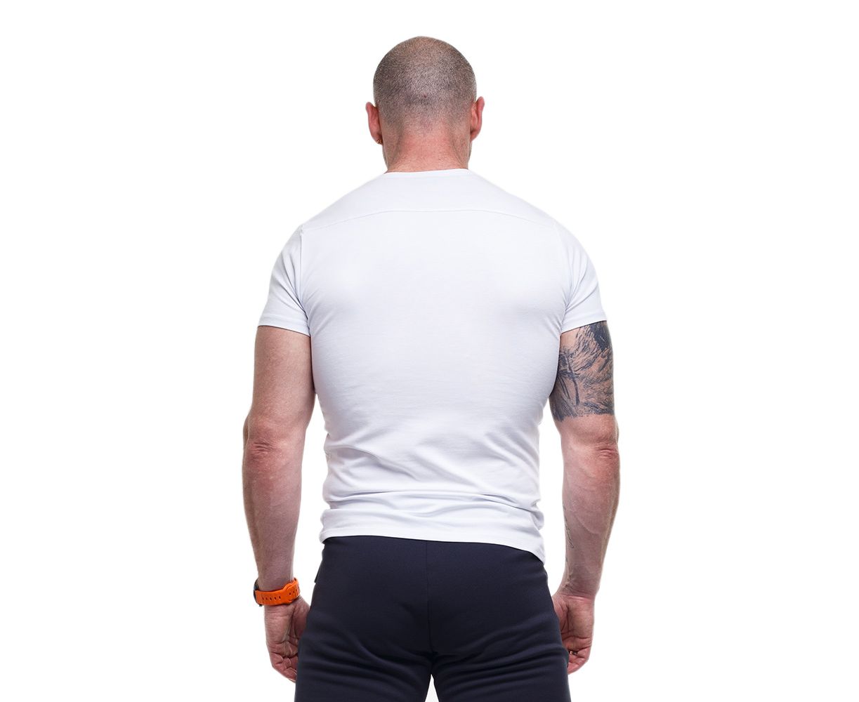 Материал футболки Jersey White - комбинация 95% натурального хлопка и 5% эластана, плотностью 200-210 г/м2, дают удобную посадку по любой фигуре.